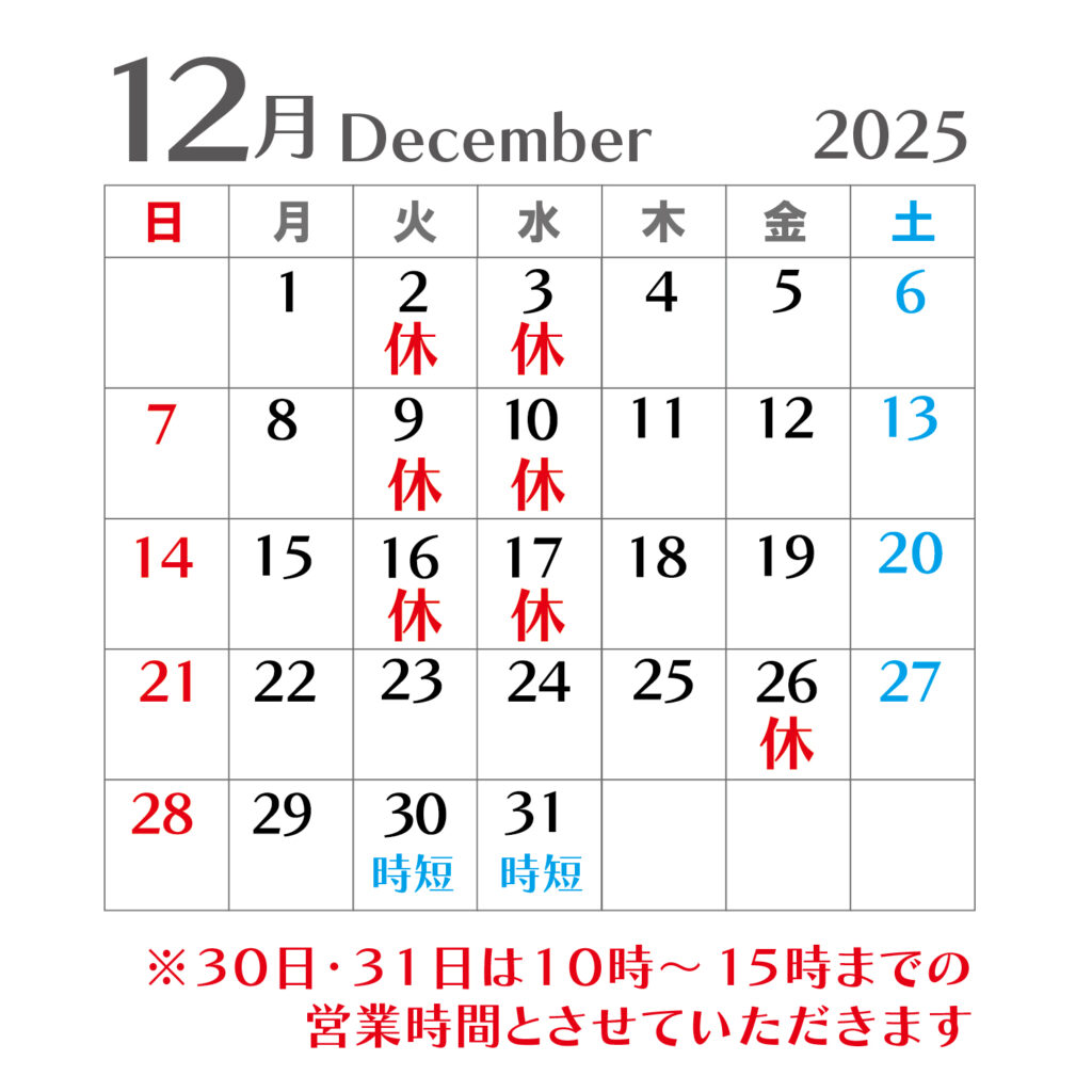 - 定休日/毎週火曜日・水曜日 ※祝日は営業いたします