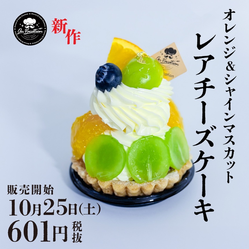 販売中の第1弾のシャインマスカットショートケーキ、第2弾のレアチーズケーキどちらも自信作なのでぜひ両方ご賞味ください😊