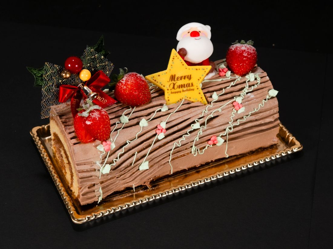 パティシエがこだわったアーモンドプードル入りのジョコンド生地たっぷりのチョコクリームで巻き、切り株のイメージで仕上げました。