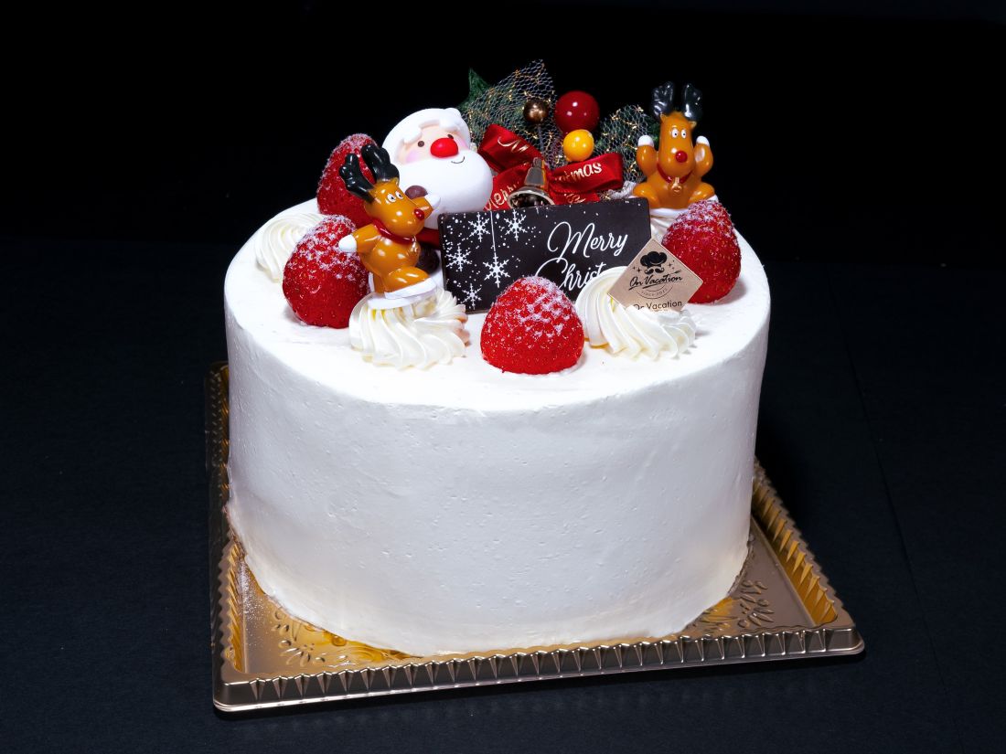 ガトーフレーズをX'mas用に楽しくデコレーションしました。苺とカスタード入りの生クリームを二段にサンドしています。こちらは4号サイズになります。
