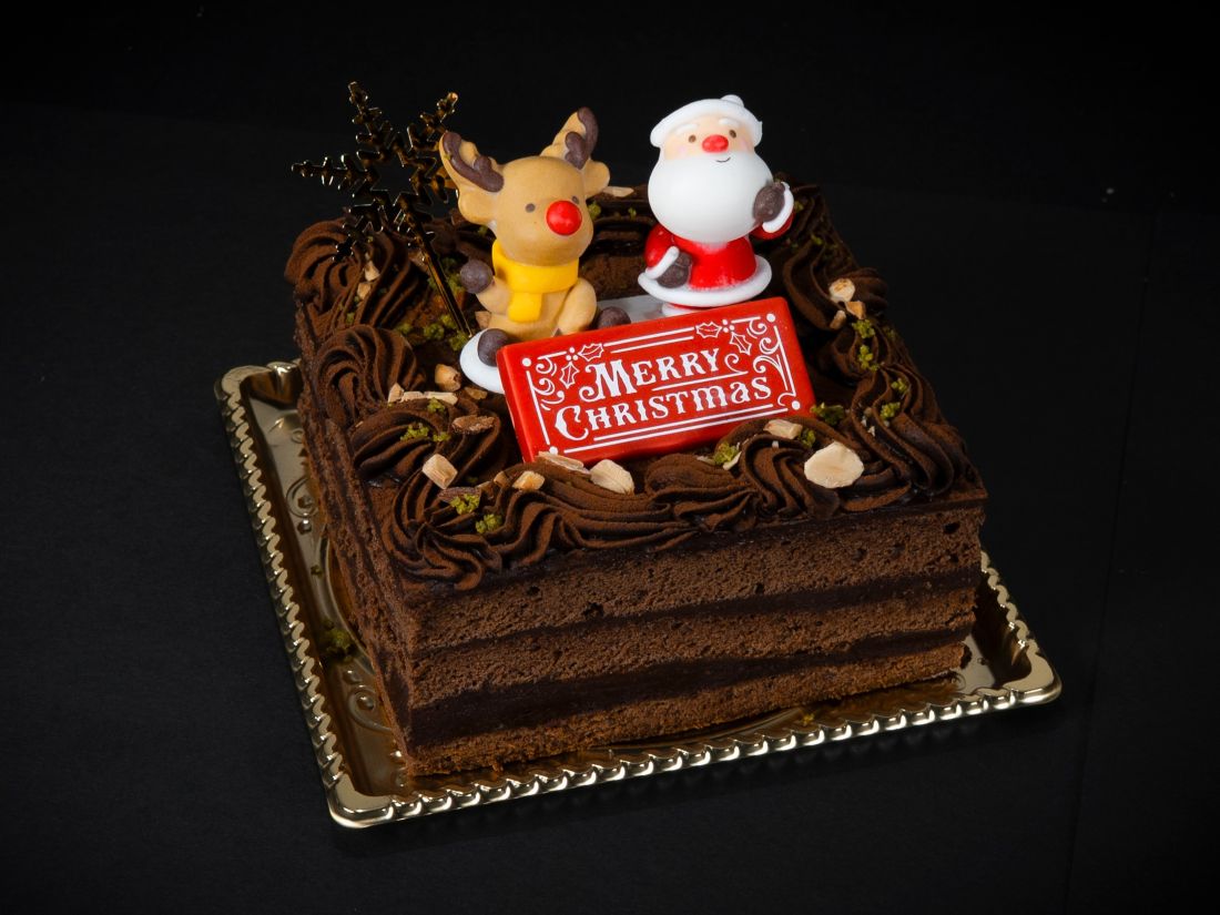 定番のショコラフィーヌをクリスマス仕様にしました。ほんのりシナモンの香るチョコスポンジとチョコガナッシュをサンドしました。